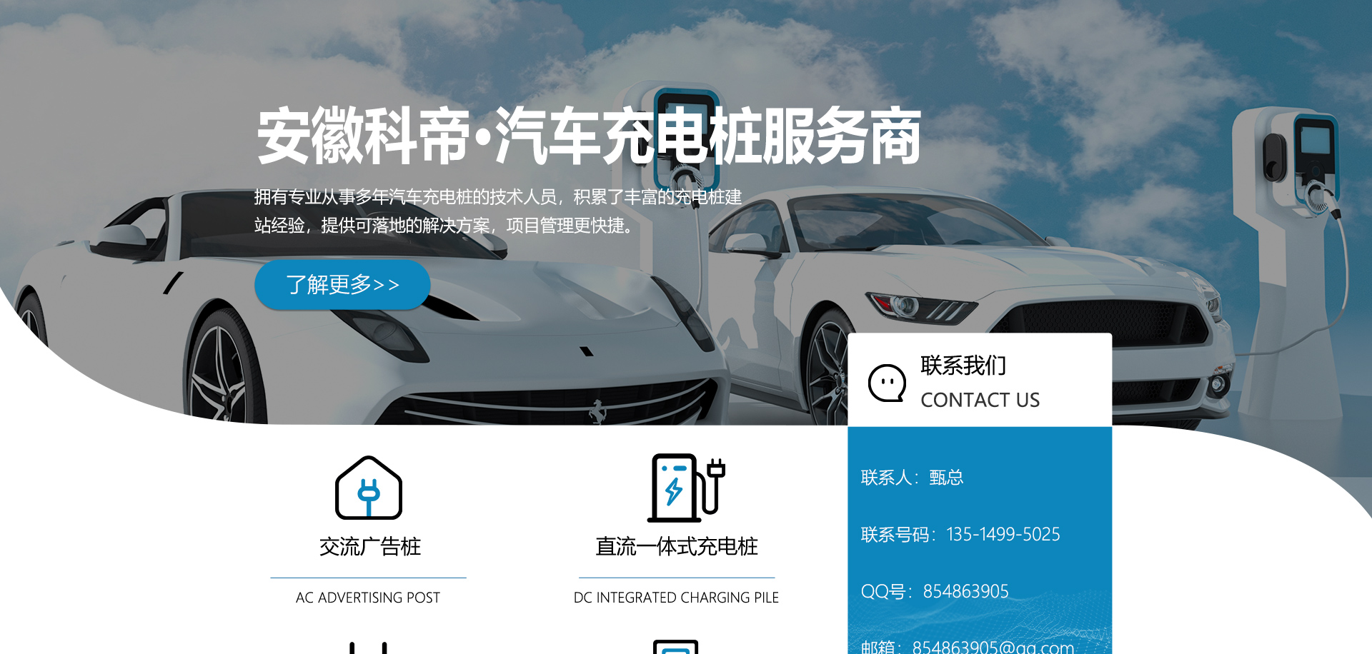 關(guān)于我們安徽科帝新能源科技有限公司坐落于安徽省會-合肥,是一家研發(fā)、生產(chǎn)智能充電樁設(shè)備,汽車充電站后臺監(jiān)控管理系統(tǒng)和生產(chǎn)高壓開關(guān)設(shè)備的企業(yè).由專門的研發(fā)團隊、管理團隊按照現(xiàn)代化企業(yè)制度規(guī)范設(shè)立的有限責任公司。致力于為能源智能、安全的應用和節(jié)能減排提供整體的技術(shù)與產(chǎn)品解決方案。科帝集研發(fā)、設(shè)計、生產(chǎn)、銷售以及服務(wù)于一體,在電動汽車充電方案,充電設(shè)施建設(shè)和城市配電方面擁有廣泛的技術(shù)研究及經(jīng)驗積累,為客戶提供安全、智能的充電設(shè)備及充電運營站建設(shè)一體化解決方案。并堅持以人為本、質(zhì)量為先、顧客至上、不斷創(chuàng)新”的企業(yè)理念,為能源行業(yè)的發(fā)展、節(jié)能減排做出重大的貢獻。公司擁有豐富的產(chǎn)品種類,目前科帝已研發(fā)生產(chǎn)了三十多種產(chǎn)品,充電設(shè)備有直流一體式充電樁、直流分體式充電樁、直流廣告樁、交流廣告樁、廣告一體樁、壁掛交直流樁;等多種充電設(shè)備;每一款產(chǎn)品都是精心打造,力求為客戶提供優(yōu)越的用戶體驗。展望未來科帝將通過持續(xù)的自...